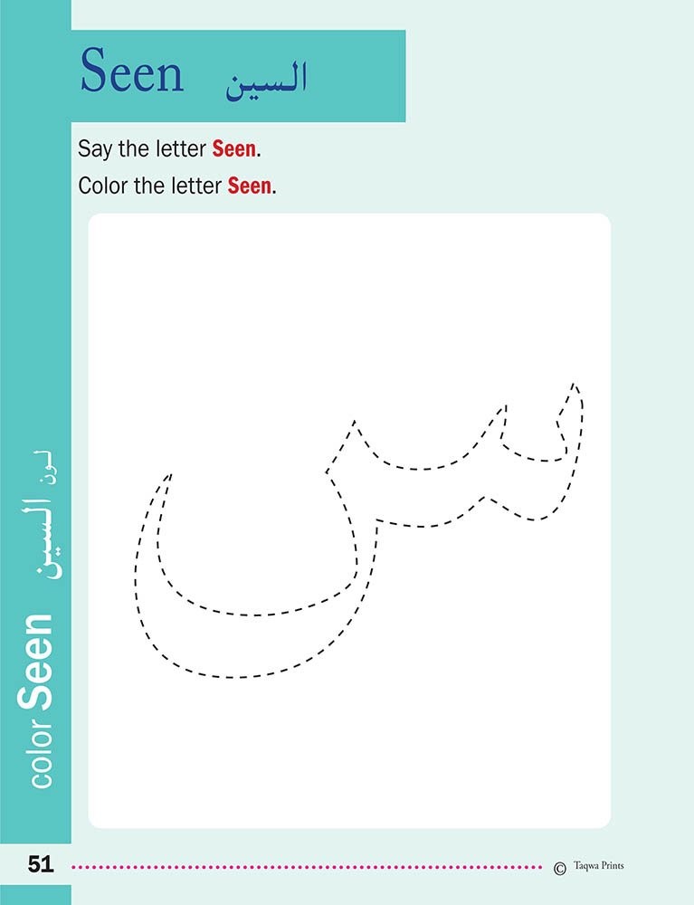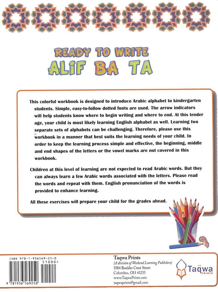 Ready To Write: Alif, Ba, Ta [Author: Husain.A.Nuri]: This book is for both writing and coloring Arabic alphabets.
