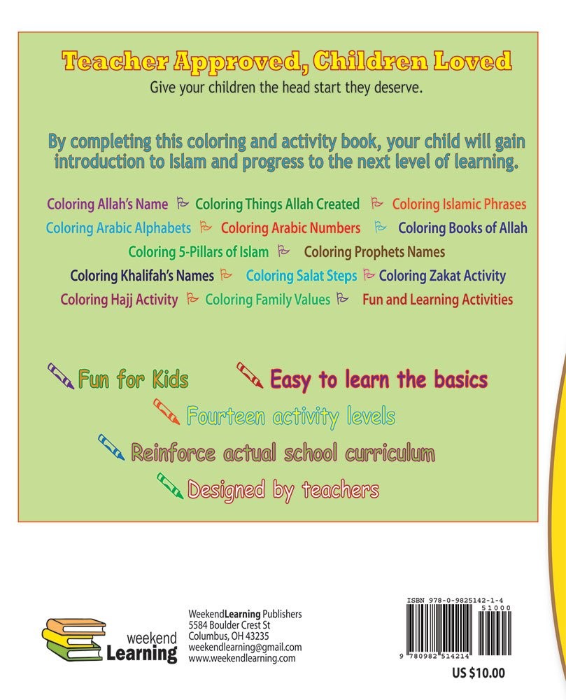 My Islamic Coloring Book [AUTHOR: HUSAIN A NURI]: This book teaches coloring and learning at the same time, with the following themes;