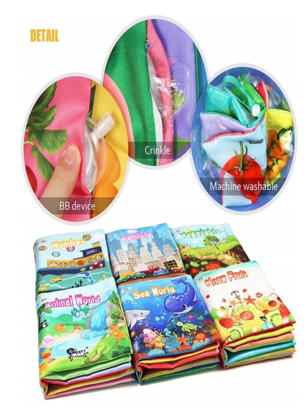 • Made of washable fabrics that are soft and great to touch. Includes bright contrasting colors which will hold your baby’s attention for long periods of time and durable pages which will last even for the roughest of babies!